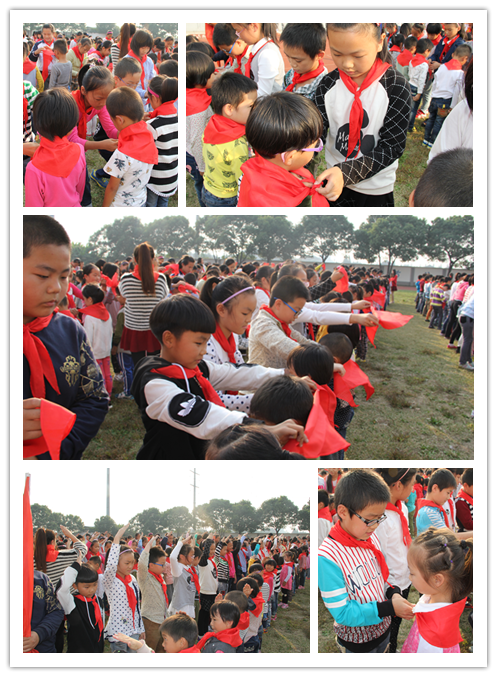 为了让一年级新生在入队前更清楚地认识少先队这个光荣的组织,加强少先队员的光荣感和责任感,在入队仪式前一周,大队部便精心部署,组织各班班主任在每天的夕会课上对新队员进行入队前的队知识教育活动。从讲解少先队的来历到手把手地教小朋友敬标准的队礼,从分解动作教小朋友系红领巾到逐句学唱队歌,当显细致入微。鲜艳的红领巾在孩子们纯净的眼睛里闪动起炽热的火花,也在明净的心灵里滋长起光荣与职责。