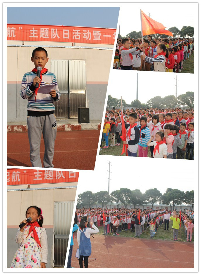 活动进入尾声,全体少先队员在大队辅导员的带领下,面向鲜红的队旗,举起右拳,庄严宣誓:“我是中国少年先锋队队员,我在队旗下宣誓……”稚嫩的声音,铿锵有力,久久地回响在校园上空。
