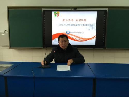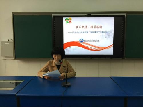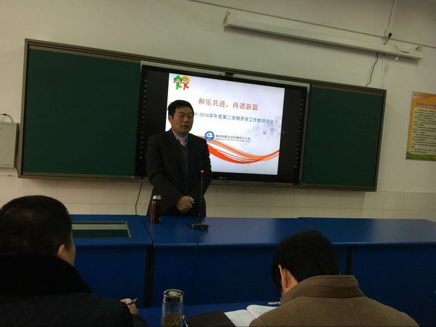为确保新学期开学工作规范有序的进行,2月19日上午,我校2015-2016学年度第二学期开学工作会议在多媒体教室召开,学校领导班子成员及全体教职员工参加会议。会议由曹立新副校长主持。