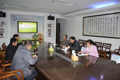 贾副镇长在王志良校长的陪同下,首先参观了校园,随后查看了师生食堂,对师生用餐安全提出了要求和建议。在会议室,一行听取了王校长有关学校工作的汇报,王校长重点介绍了学校的办学理念、办学规模、校园文化建设情况以及近年来取得的成绩,汇报了学校开展足球、射箭、锡剧等乡村少年宫取得的成果,同时也提出了学校发展目前存在的瓶颈。