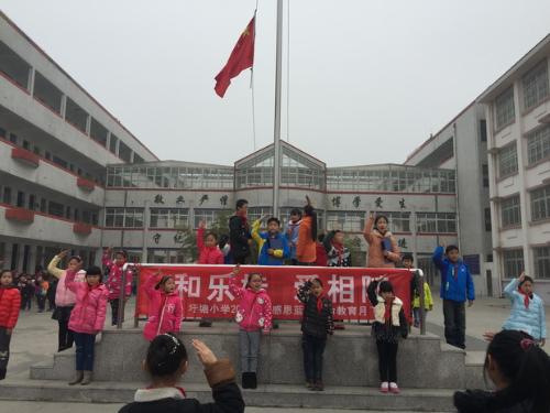 雄壮的国歌声中,五星红旗徐徐升起,曹校长在庄严的国旗下宣布生命教育月正式启动,并详细介绍了生命教育月丰富多彩的活动:有一年级小朋友到康复医院的献爱心活动,有三、四、五年级到新龙森林公园开展植树、认树、放风筝等的“放飞绿色梦想”活动,也有为六年级女同学开展的“小橘灯”防性侵自护教育活动,还有“和乐娃 爱相随”主题手抄报、绘画比赛,更有全体同学都可以参加的生命教育网络知识竞赛等,希望同学们能通过丰富多彩的生命教育月活动为成长的手册增添一长串多彩的生命记忆。