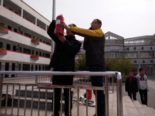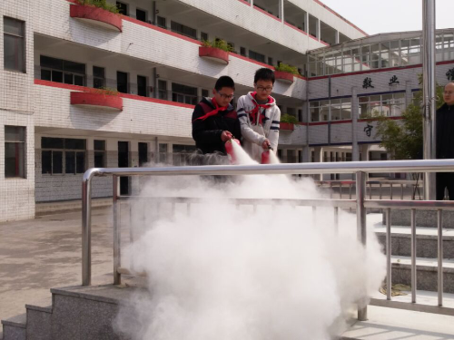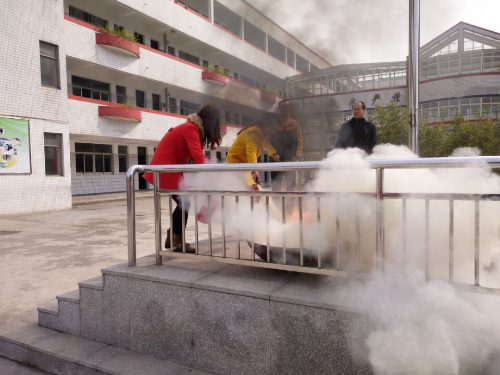 随着一声警报,老师们各负其责、密切配合,在各楼层指挥的老师带领班内的学生紧急从不同楼道及安全出口有序疏散,大家迅速撤离教室,并按照预定路线疏散到大楼前空地,各负责老师也马上清点了学生人数并立刻作了情况汇报。整个过程中无拥挤情况发生,撤离工作井然有序。完成全部撤离工作仅用了2分10秒。接着进行了灭火演练,由两位女老师作灭火示范,两位高年级男生进行灭火实践,活动取得了预期的效果。