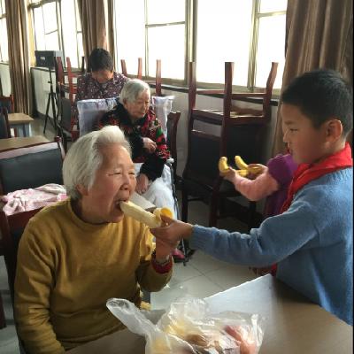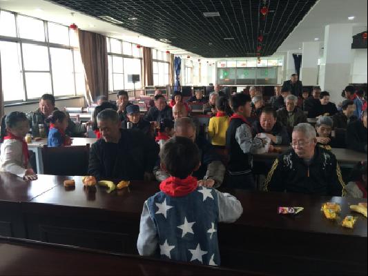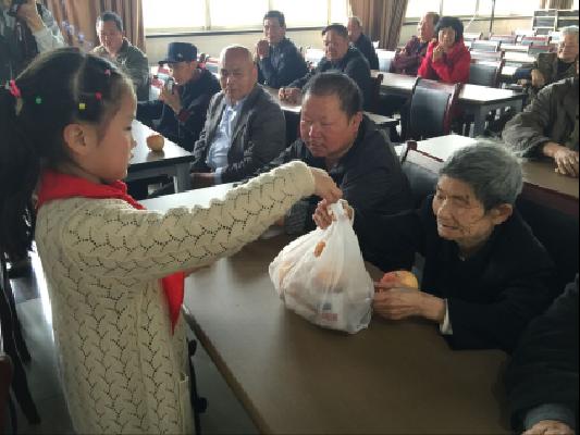 老人们用灿烂的笑容迎接孩子们的到来,演出结束后,孩子们把特地为老人准备的水果、面包等送到老人手里,学生们拉着老人的手边聊边笑,老人们看到学生们天真的笑脸、听到他们亲切的问候不时感动得热泪盈眶,会场其乐融融。