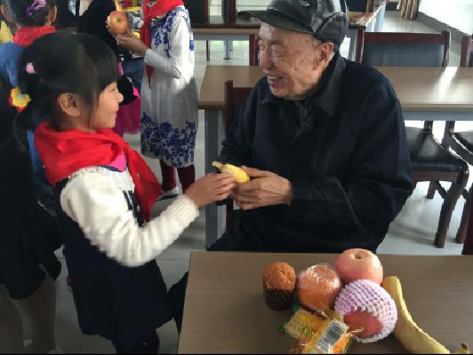 孩子们现场表演了精彩的文艺节目。开场歌曲《外婆的澎湖湾》勾起了老人们的美好回忆;童趣十足的《大王叫我来巡山》,让老人开怀大笑;古筝独奏《渔舟唱晚》把演出推向了高潮;集体舞《感恩的心》和《小苹果》博得老人们的热烈掌声。老人们高兴地说:“看到这些天真可爱的孩子们,我们仿佛回到了童年。”