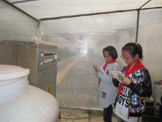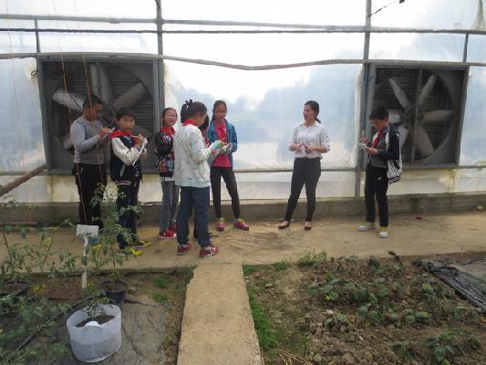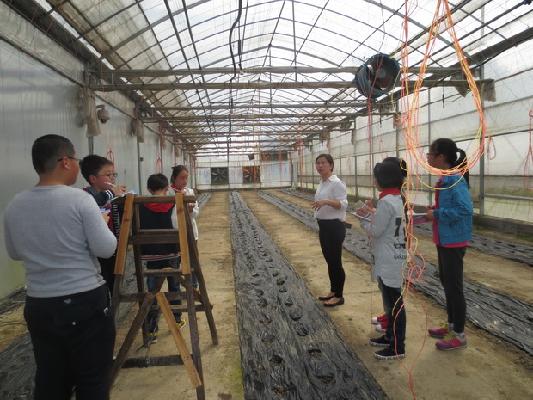 各活动小组成员根据主题活动方案,围绕传统农业与远程操控、网络互动,夏季降温水帘,臭氧消毒,水肥一体化等高新技术展开采访、调查。当看到吸引人眼球的、安装在大棚内的360度全方位的高清摄像头时,惊讶连连,急急采访。管理员阿姨说,这些摄像头都与互联网相联,可以实现远程实时视频传输。当了解到网络游戏可以与种植相结合,可以获得真实的种植体验时,同学们都产生了浓厚的兴趣,踊跃体验。