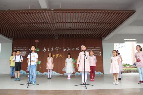 《十岁宣言》的齐诵,将此次成长仪式推上了高潮。孩子们一起庄严地宣誓,树理想,立壮志,好好学习,努力掌握新科技;讲文明,讲礼貌,形成道德好风气;勤动手,勤动脑,创造之花开满地,做名了不起的中华好少年。家长代表深情的寄语和温情的讲述让亲情在这个特殊的时刻荡漾,让孩子们感受到了家长的爱。