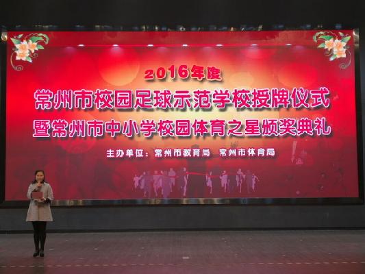 2016年1月9日上午,常州市首批“校园足球示范学校”授牌仪式及常州市校园足球高峰论坛在常州市第二十四中学天宁分校举行。常州市政府副市长方国强、教育局局长丁伟明、副局长常仁飞、体育局局长朱笑冰、副局长堵文波等相关领导和各辖市、区教育局、体育局分管局长、分管领导,以及来自全市的相关学校校长、分管领导、体育教师代表参加了此次活动。