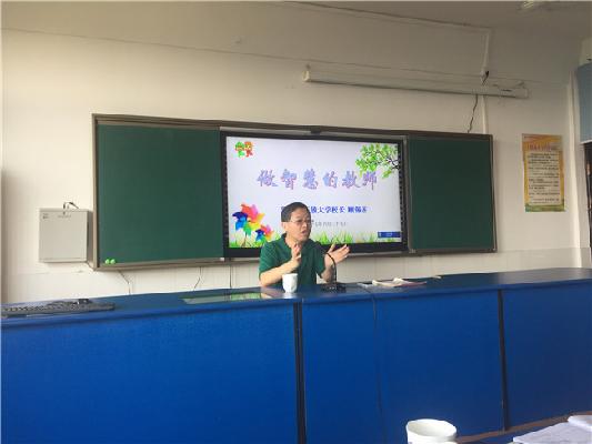 盛夏光年,知了声声鸣叫。8月27日上午,圩塘小学暑期校本培训活动正如火如荼地进行着,全体教师齐聚多媒体教室,聆听常州市开放大学顾锡宏校长的精彩讲座《做智慧的教师》。