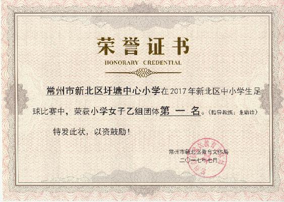 我校开展形式多校的校园足球运动,结合体育节举行校内足球联赛,开展足球冬令营、夏令营活动,激发学生的兴趣,提升学生参与足球活动的积极性。学校成立了校级层面的专业队,梯队建设也同步开展。同时积极参加市区组织的各类比赛,成绩喜人:2017年5月,常州市小学生足球春季联赛女子甲组第六名;2017年7月新北区中小学生足球比赛中,女子乙组获第一名,女子甲组获第二名;2017年8月常州市小学生足球锦标赛女子乙组第六名。