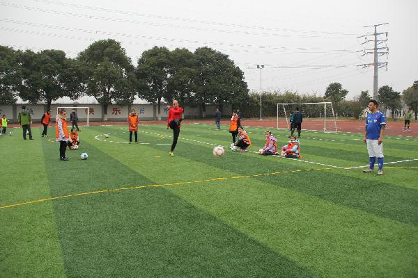 传授完知识的志愿者们还饶有兴趣地和学校的女足队进行了一场别样的友谊赛,女足球队员们敢拼敢抢、团队配合、灵活跑位等表现得到了志愿者们的一致好评。赛后,志愿者们与校女足队员们一一握手并鼓励孩子好好踢球。
