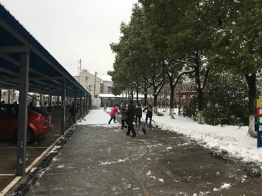 为了保障师生出入安全和校园内道路畅通,1月28日下午,圩塘小学党支部书记王志良和工会主席黄晓东带着刘小峰、冯炜、顾华杰、李庆才、顾多慧、张建兴、陈刚、许卓群、郭紫瑛等部分行政和老师,学校职工和门卫清扫积雪,铲除寒冰。虽然天气寒冷,但劳动热火朝天,撸起袖子加油干!握着扫把铁锹、自制扫雪神器,在校园的道路上演奏着的铲冰除雪“进行曲”。