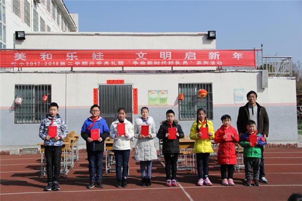 金鸡报捷梅花俏,义犬迎春柳色新。新春伊始,万象更新。2月26日,和乐娃们精神抖擞地走进美丽洁净的校园。寂静了二十多天的校园,又变得生机勃勃,充满朝气!下午,全体师生观看“我是新时代好队员”——新学期第一课暨2018家校联系本发放仪式活动视频后,便齐聚国旗下,举行“最美和乐娃,文明启新年’——2018年春学期开学典礼暨“争当新时代好队员”系列活动。