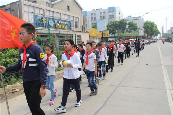 一路上,伴着飘扬的少先队队旗,队员们手拿小白花,个个昂首挺胸,精神抖擞,眼里闪着坚毅的光芒,整齐的队伍,放眼望去如一条矫健的苍龙。原本印象中长长的路,很快便成为队员们背后的风景。大家以英雄的姿态,卓然的表现,完成了对他们的挑战与考验。为了保证活动的顺利进行和队员的安全,春江镇圩塘关工委的领导全程参与活动,圩塘派出所组织警力,一路为队员保驾护航。
