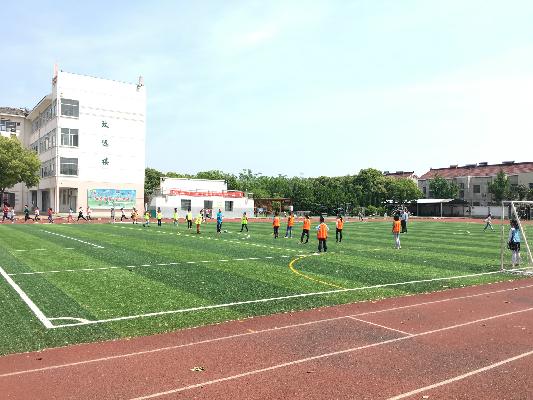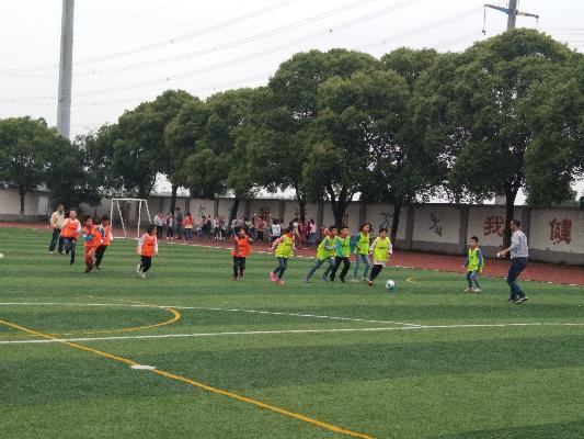 五月,繁花似锦,绿荫如海,一切都显得那么热情洋溢,生机盎然。圩小的绿茵场上出现了一道亮丽的风景线——三年级组的足球联赛正轰轰烈烈地进行着。