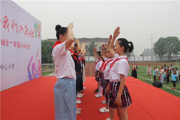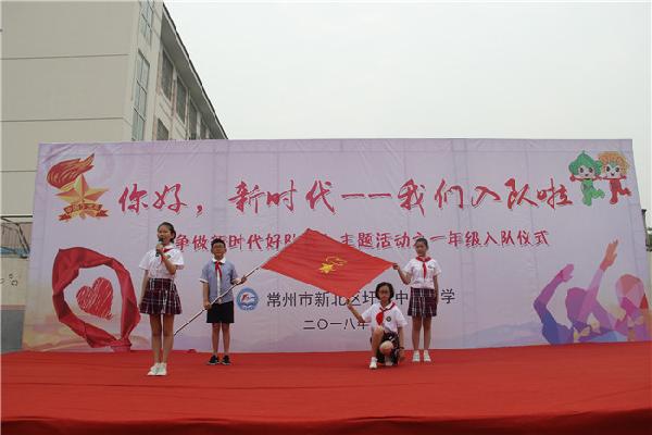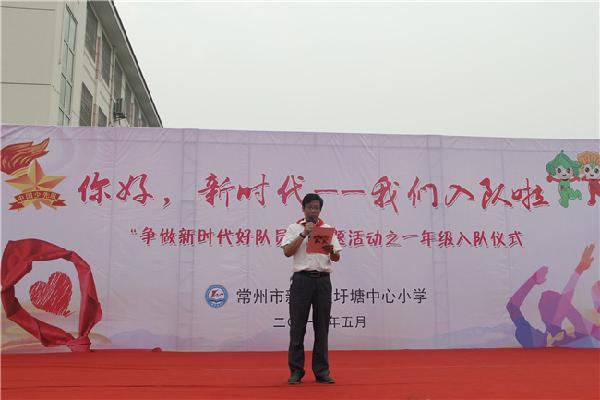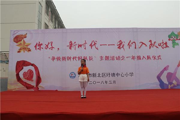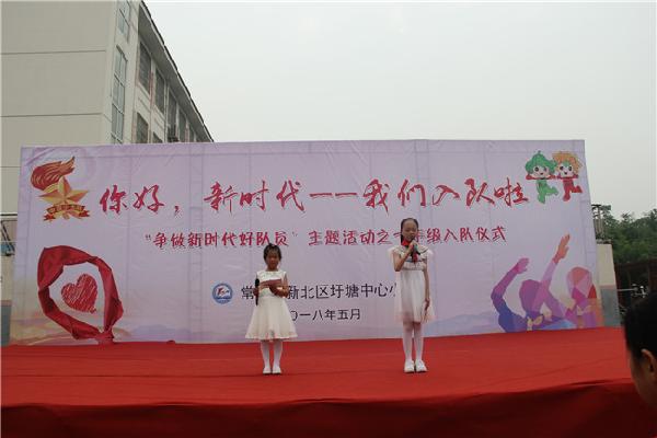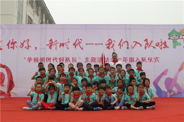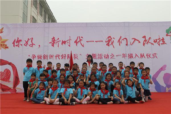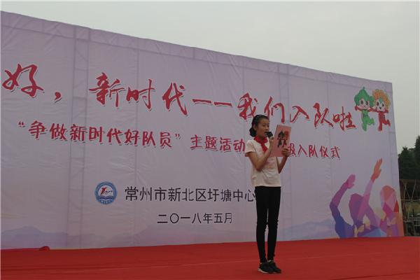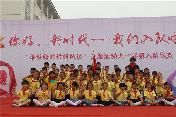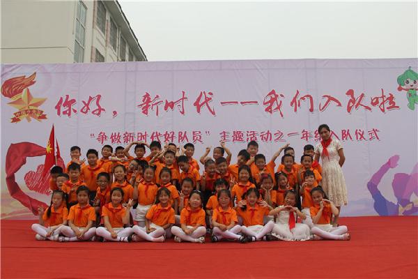 蓝天下,绿草茵茵鲜花盛开;队旗下,张张笑脸充满希望。踏着六一的节拍,5月30日上午,圩塘中心小学举行了"你好,新时代——我们入队啦"一年级入队仪式。