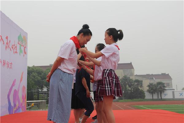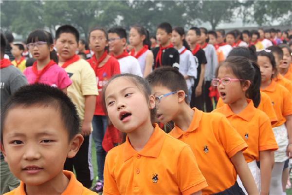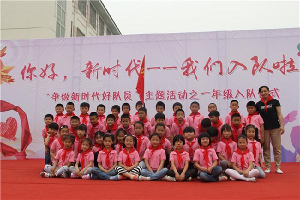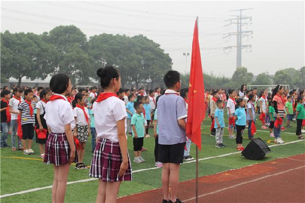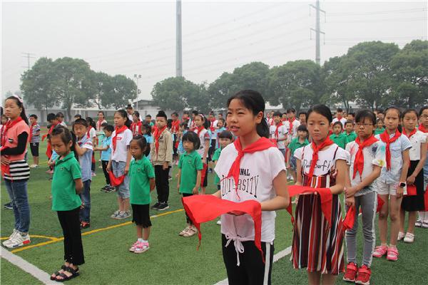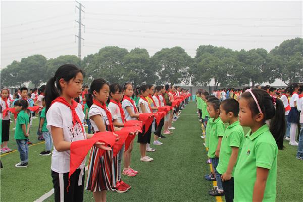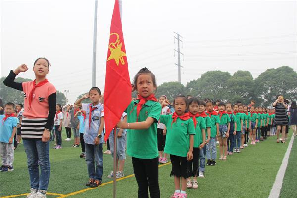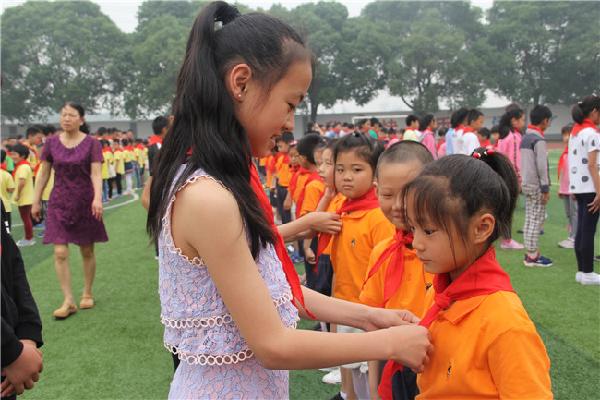 当雄壮的《中国少年先锋队队歌》响起时,新老队员齐声高唱队歌,用嘹亮的歌声表达对少先队的热爱和内心的喜悦。随后,曹校长宣读新辅导员、新队员名单,孩子们脸上洋溢着幸福和自豪的笑容。最激动人心的时刻到了!队旗下,老队员们郑重地为一年级新队员系上了红领巾,鲜艳的领巾映红了新队员们的一张张笑脸。紧接着,全体新入队的队员和老队员在少先队大队宣传委员耿佳美的带领下,面向鲜红的队旗,高高举起右拳庄严宣誓,字字铿锵,操场的上空回落着少年好儿郎的坚定誓言。老队员代表张梓涵用最诚挚的语言讲述自己的成长故事,新队员代表洪依萌带着稚气的童音表露了全体一年级小朋友的心声:我会用自己的行动,让红领巾更红,让队旗更亮,为学校争光、为队旗增辉!最后,少先队大队辅导员王老师带领全体队员呼号,“准备着,为共产主义事业而奋斗!”“时刻准备着!”在庄严的退席曲中,仪式圆满结束。