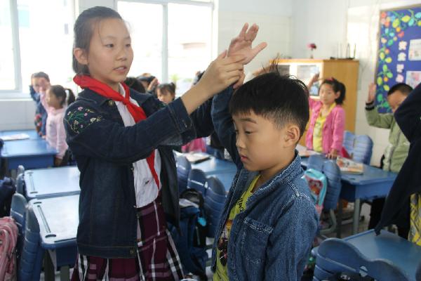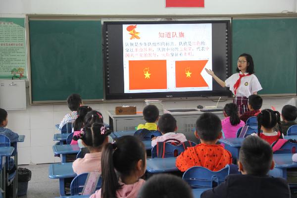 课堂上,小辅导员们有模有样地讲述习爷爷对少先队员的关心和嘱托;介绍少先队的组织生活和活动;讲述少先队的历史;讲解少先队的相关知识:教弟弟妹妹认识队旗理解星星火炬的含义,用儿歌的形式教弟弟妹妹佩戴红领巾,教唱队歌《我们是共产主义接班人》。一年级的小同学听得津津有味,看得专心致志,学得用心认真。