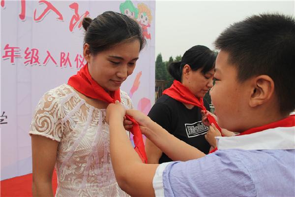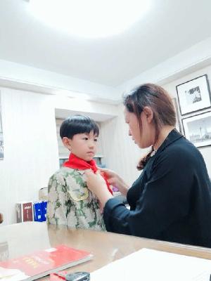 家长们也给孩子们带来了别开生面的队前教育,或细致地教孩子系红领巾,或一遍遍地纠正队礼,或一字一句地将队章读给孩子听……孩子们也兴奋地把自己刚学到的队知识同爸爸妈妈分享,亲子学习,共同成长。