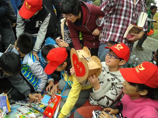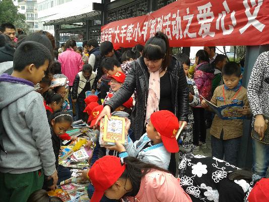 上午,五年级的孩子们在老师的带领下参与到了义卖活动中。30余名学生将闲置的课外读物、学习用品、手工艺品、小饰物等心爱之物奉献出来,出售给社区居民。“小摊主”们虽然年龄小,但很有卖家的味道,边展示手中的玩具,边向路过的小朋友吆喝,甚至拿着自己得意的商品在集市门口叫卖。五(1)班的黄珂同学打出了八折的口号,声嘶力竭叫卖的同时还搞出“买书赠书签”的促销活动。