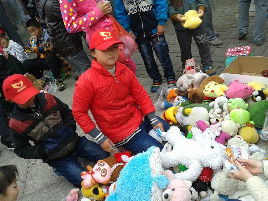 “走过路过,千万不要错过,快来看一看,给钱就卖啦……”“毛绒玩具超低价甩卖!快来看看哦……”3月15日上午,圩塘新民广场人头攒动,叫卖声、吆喝声不绝于耳。圩塘小学五年级的小小志愿者们纷纷把自己的闲置物品拿到了现场进行义卖,社区居民在现场寻找着自己中意的商品的同时捐出自己的一份爱心。