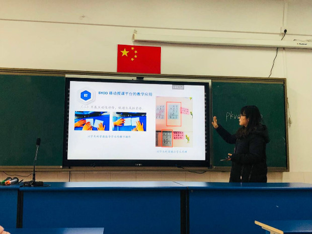 培训开始,荆亚琴老师阐述了应用现代信息技术未来将实现的三个转向,即一、学情分析从经验判断转向数据实证;二、师生交流从思维结果转向思维过程;三、学习活动从个别参与转向面向“每一个”,更好提高课堂教学活动。接着,荆亚琴老师对希沃授课助手、希沃同屏、希沃白板的使用展开了详细的介绍,希沃传屏的交互使用功能从其使用方法、功能、与希沃授课助手不同几个方面进行了详细介绍,教师在课堂上可以随时对学生作业进行拍照上传、可以在手机屏幕上修改、用红色、蓝色、绿色等不同颜色标记;同时也细致讲解了希沃白板的主要功能:如何登陆希沃软件,如何新建云课件。通过实例操作和老师们现场练习,一一讲解了备课中“文字、形状、多媒体、学科工具”的制作技巧,“思维导图”这些在PPT中没有的功能,还可以通过手机在教室的电脑上投放试卷题目、制作的课件也能存储在希沃白板的云端,随时保存使用,更是让大家体验到了一个全新的交互式课件制作软件的魅力所在。培训会后,荆老师还细致的和参与培训的各位老师进行了互动交流,解答老师们的疑问。