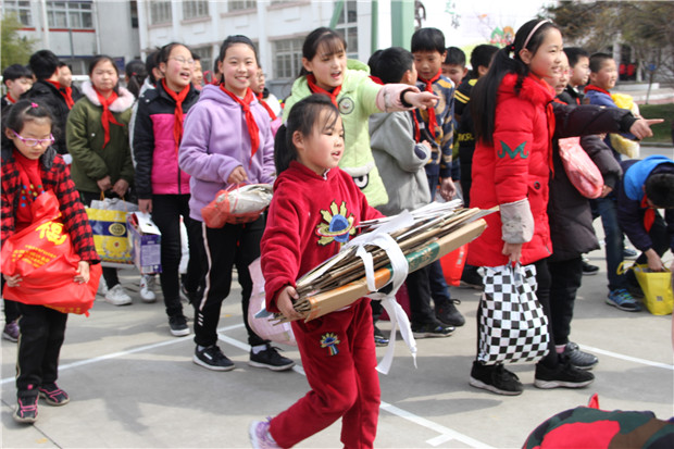 3月12日,大队部徐玉老师向全体师生作了“拒绝流浪地球”的绿色倡议,“集废纸、攒平安、播法治、树文明”之“在幸福树下欢乐成长”环保公益活动也就此拉开了序幕。