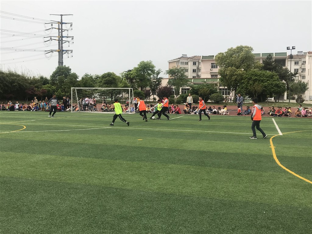 5月9日下午,迎来了激动人心的冠军之战,他们是五(1)班和五(6)班。开场仅4分钟,五(6)班一记中距离挑射成功将球送入球门,瞬间点燃了场边观看助威的同学和老师们的热情,这也使五(6)班在后面的比赛中一直占据着场上的主动,多次将球带到对方球门附近,给对方造成了很大威胁。在第一节快要结束的时候,五(6)班的男生队以流畅的配合再下一城,将领先的优势扩大到了2 : 0,五(6)班的女生队将2 : 0的比分保持到终场结束。五(6)班获得冠军,五(1)班获得亚军,五(4)五(7)班获得季军。