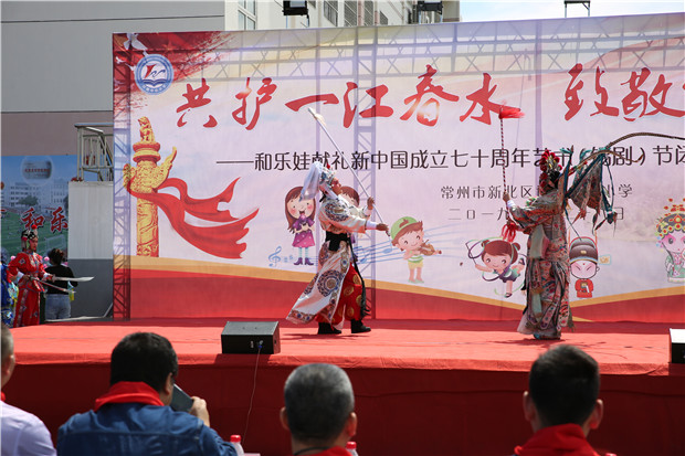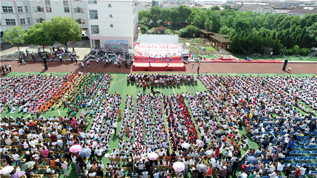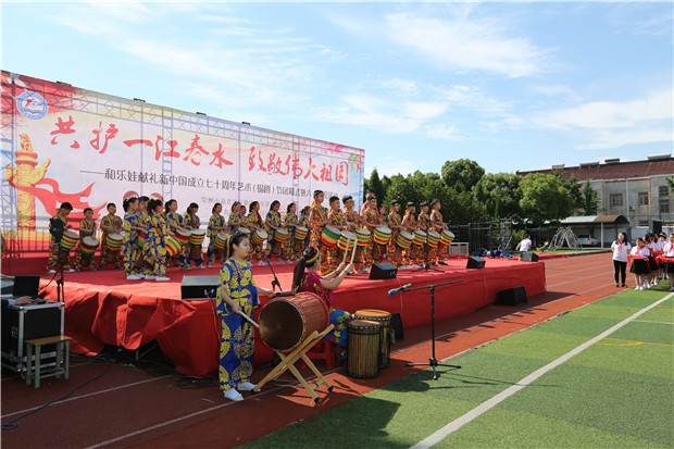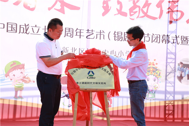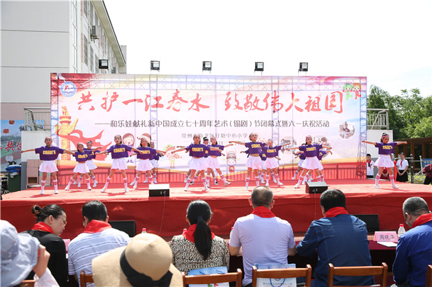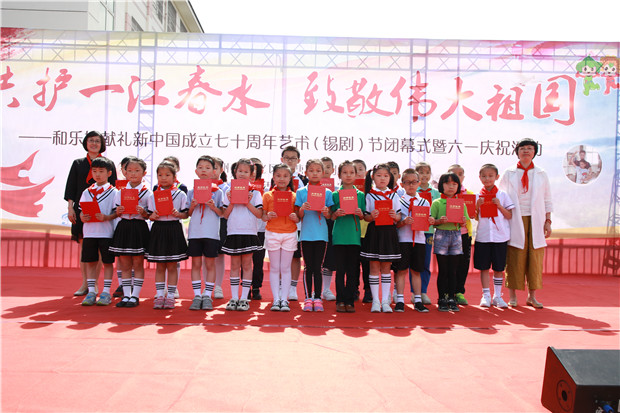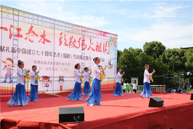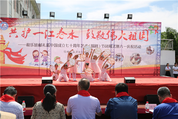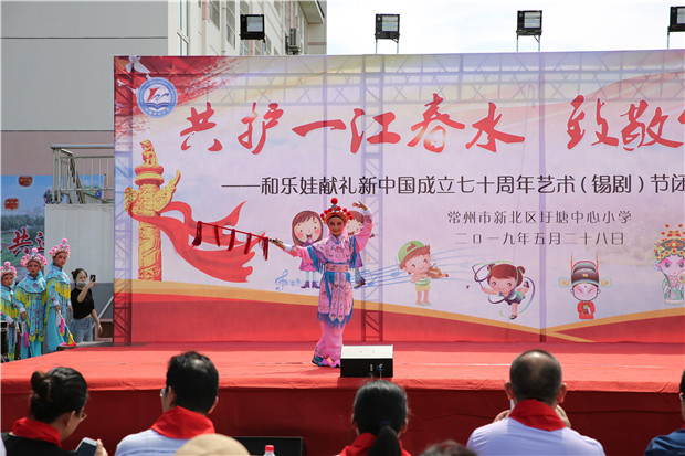 岁月峥嵘,传承共谱华章;韵律铿锵,和乐凝聚辉煌。5月28 日上午,喜逢祖国70华诞之际,圩塘小学“共护一江春水 致敬伟大祖国”和乐娃献礼中华人民共和国成立七十周年艺术(锡剧)节闭幕式暨六一庆祝活动如期举行。北京、湖北武汉、江西九江、常州市、区、镇、办事处的相关领导受邀莅临活动现场,出席本次活动的嘉宾还有五家爱心助学共建单位的代表、学校锡剧等特色项目外聘辅导员、学校校务委员会、关工委、家长委会员的全体成员以及八百名家长代表等,近三千人参加了本次艺术节盛宴。