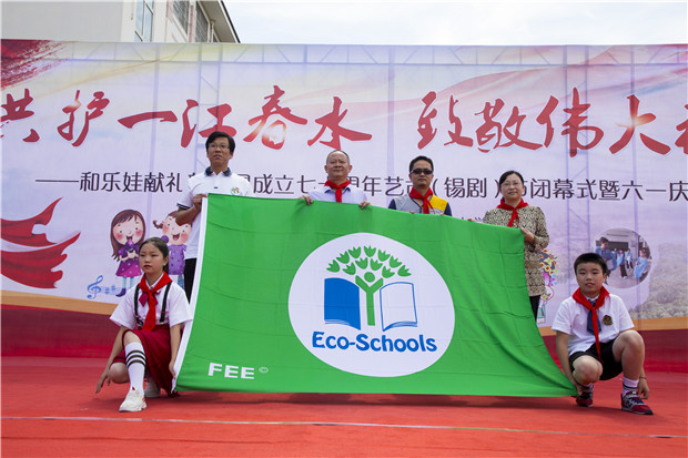 现场,常州市生态环境局徐德祥、孙雪云、新北区生态环境局金雷为我们授“国际生态学校”绿旗。圩塘小学曹立新副校长和优秀少先队员代表接旗的一刹那,操场上响起了热烈的掌声。