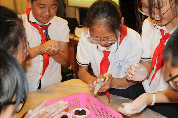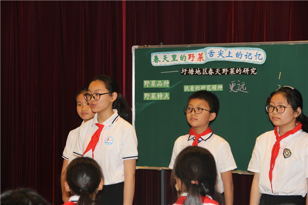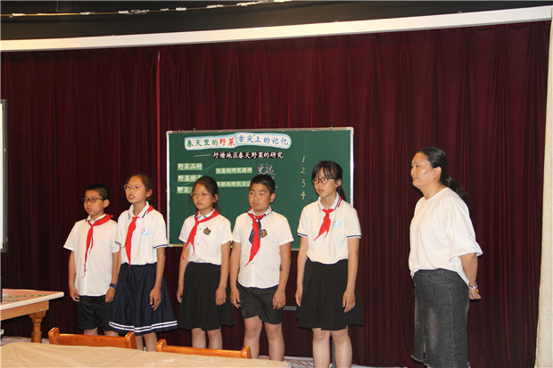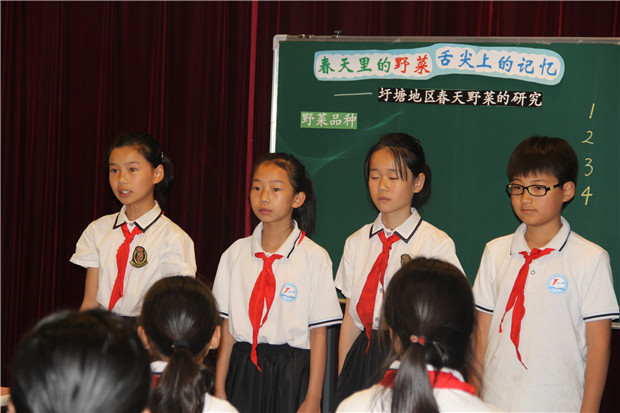第二节课是圩塘小学的陈小红老师授课《春天里的野菜 舌尖上的记忆——圩塘地区春天野菜的研究》,这是一节汇报展示课,每个小组都精心准备了各自汇报内容,课前学生们做足了准备工作,充分发挥了自主性,采用多种研究途径,搜集资料、实地考察、拍照采访等,都能看到他们忙碌的身影。课上,汇报的学生们大方自然,完美地诠释了他们这一阶段的研究过程与心得。本课凸显了课程特点,让学生充分讨论、携手合作,不断为学生提供交流、展示的平台。如孩子们在制作蓬蒿团子的实践活动中深刻体验成功的喜悦,激发孩子热爱生活的情感,培养了孩子的动手操作能力、沟通表达交流等能力。学生时时处处都在自己的亲身实践中体验和感受,培养了情感,提升了能力。