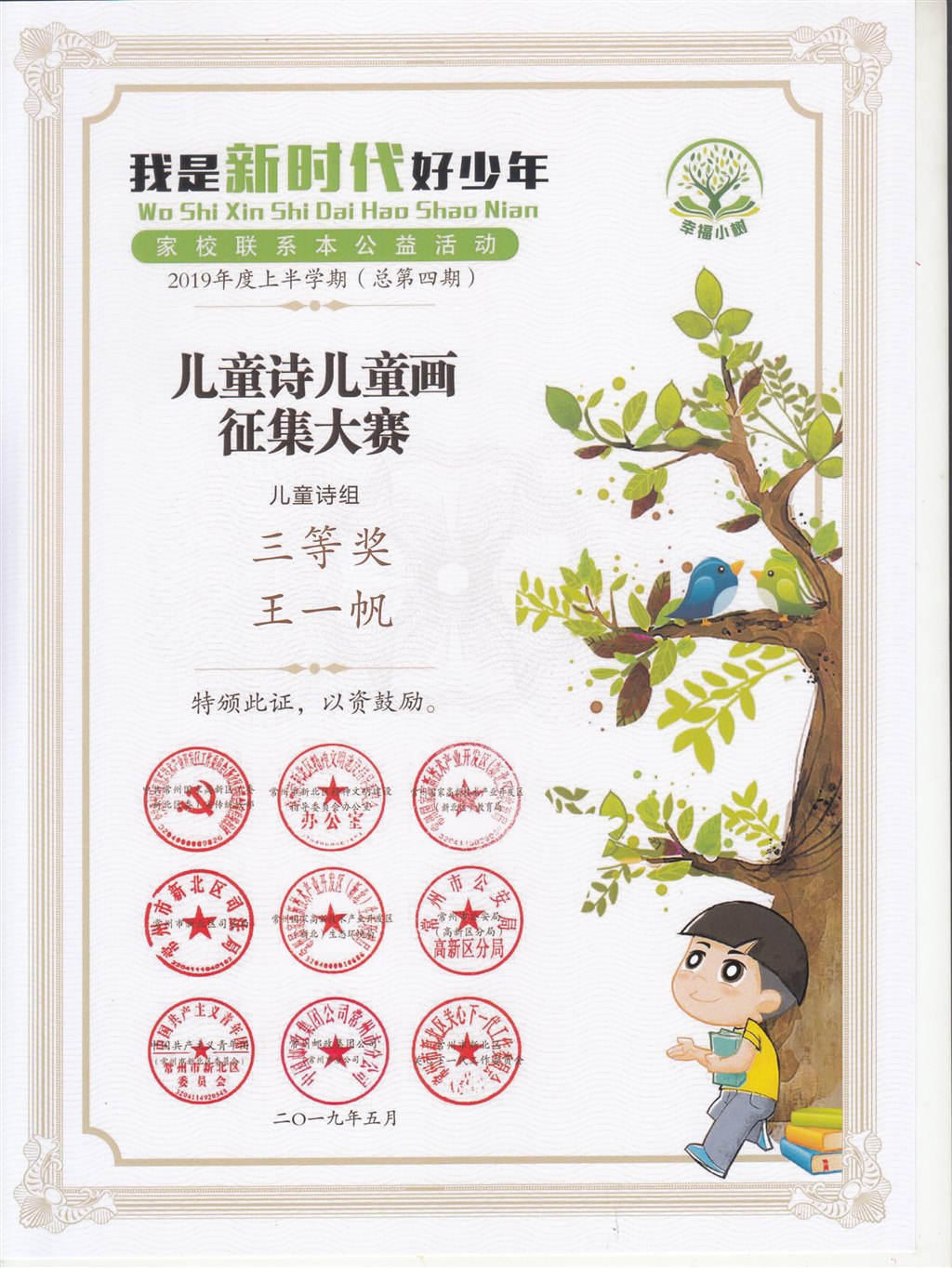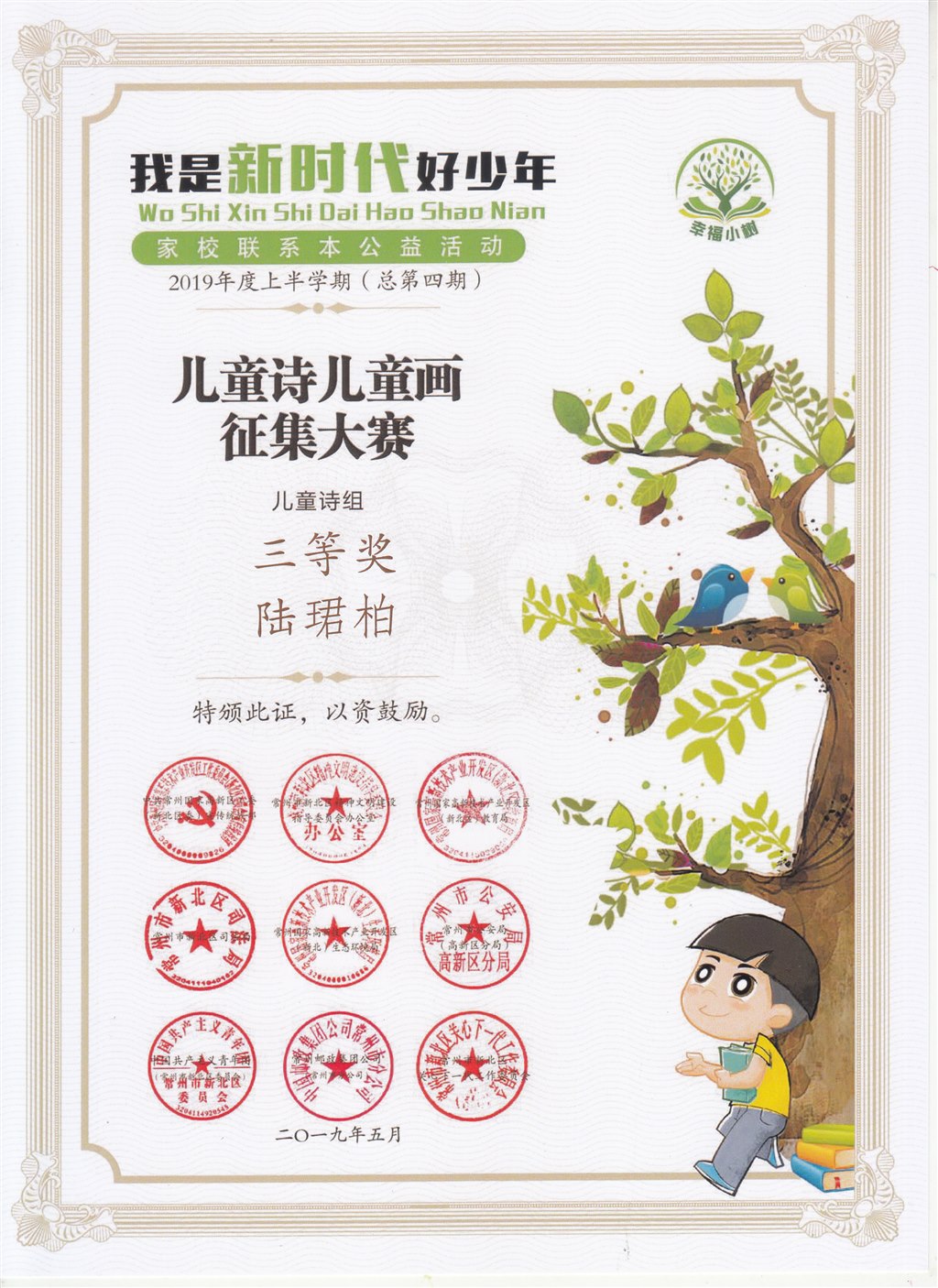 我是新时代好少年儿童诗儿童画征集大赛学生获奖证书