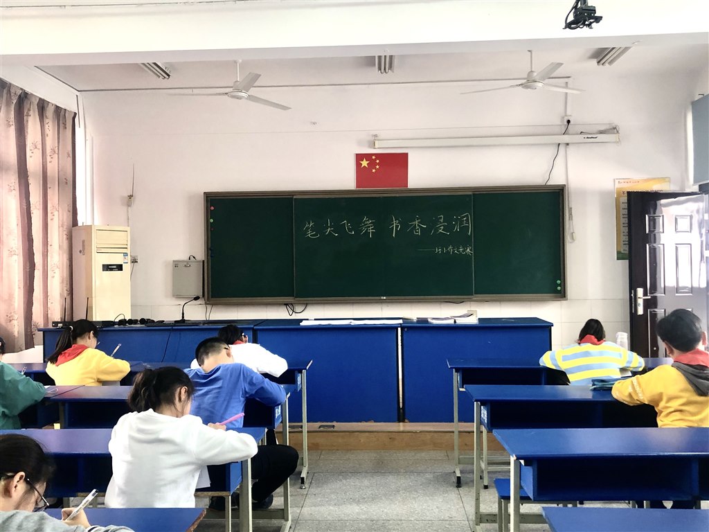 随着铃声响起,瞧!学生们一个个托腮凝思,放飞灵感,挥洒灵性,时而低头凝思,时而奋笔疾书,文思泉涌,用生花妙笔尽情在纸上抒写自己的真情实感。