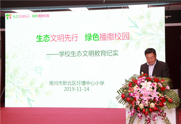 专题汇报呈现开阔的生态格局。王志良校长以《生态文明先行 绿色播撒校园》综述了圩塘小学生态教育的发展历程。随后,新北区教育处何耀平处长从“认识到位,加强领导”、“创建入手,全面推进”、“课程实施,有机渗透”、“活动体验,深入感悟”等四大维度阐述“以创建为抓手,持续推进学校生态文明建设”。最后,常州市教育局常仁飞副局长以“活动震撼、终生难忘”给予高度评价,对学校执着持续的生态教育活动给予充分地肯定,高度赞扬了学生的生态环保行动。