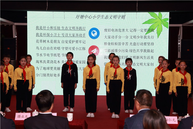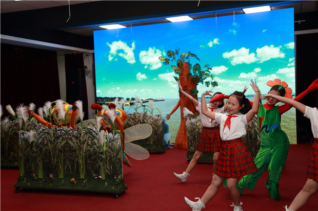 生态舞台涵养校园生活新气象。生态小舞台开演啦!非洲鼓表演《快乐的布谷鸟》鼓点铿锵,热情洋溢;锡剧版的《生态文明守则》娓娓唱来,令人耳目一新;最普通不过的旧报纸、塑料袋,废旧的纸杯、窗帘等东西都变成了一件件别出心裁的衣服,和乐娃上演了一场《环保时装秀》;小品《垃圾分类作用大》生动有趣,细节彰显正能量;二年级的小宝贝们从生活中的场景入手,用稚气童声诵读保护生态环境的童谣;锡歌校园剧《小豚大爱》由师生共同创作,呼唤大家留住江豚最美的“微笑”。来宾们凝神观看,细细品读圩小全体师生的生态情怀。