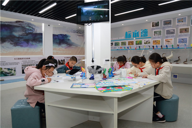 校园环境彰显浓郁的生态气息。从长江生态馆出发,王志良校长向来宾们讲述初心:馆内多视角、立体化地展现长江流域生态文明,为全校师生进一步认识长江、热爱长江、保护长江架起一座沟通的桥梁。来到农文化馆,江南传统实物农具的呈现等无不让来宾们感受到了浓郁的江南农业生态文明。徜徉在秋阳朗照下的天趣园,入目所及一片缤纷秋色。丹桂园、劲松园、韵竹园、沁梅园,又跳跃着活泼的绿色。参观途中,王志良校长依着校园的一廊一物,娓娓而谈,百年老校的文化意蕴、生态教育的理念追求……给来宾们留下了深刻的印象。
