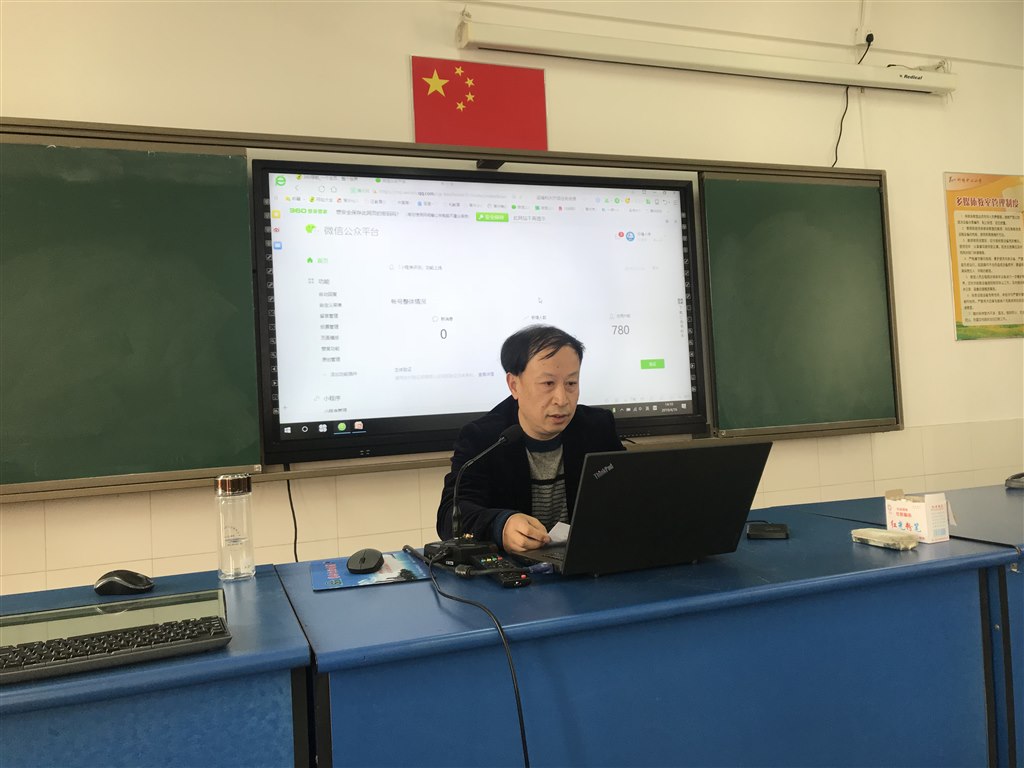 微信,带着互联网的气质与技术变革的优势,大步进入现代人的生活。卢教导从微信这一时下流行的社交软件谈起,阐述了微信公众号对于学校宣传、教育的广泛意义,强调了学校借助微信公众号进行校园工作推送的重要性及必要性,它可以传递校园资讯,展示师生风采,记录成长点滴。紧接着,卢教导结合自己学习使用微信公众号制作图文推送的操作经验,详细而生动地讲解如何撰写推送文稿,同时又专业地指出选择照片要有怎样的讲究,最后从微信图文的排版思路、排版技巧、素材网站为老师们作了细致的讲解。老师们在细致聆听之时,纷纷打开电脑跟随卢教导一起现场进行微信图文制作,提出自己的困惑及不清楚的地方。