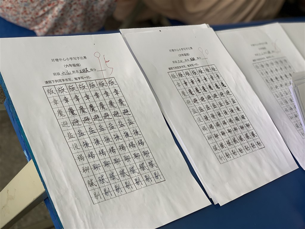 赛后,由语文老师组成的评审团对各班作品进行评比。评委老师们认真、严谨,从字的间架结构、笔画流畅度、卷面整洁度等方面综合评估学生的写字水平。在公平、公正的评分之后,每个年级评出了一二三等奖,并挑选出优秀作品进行展览。