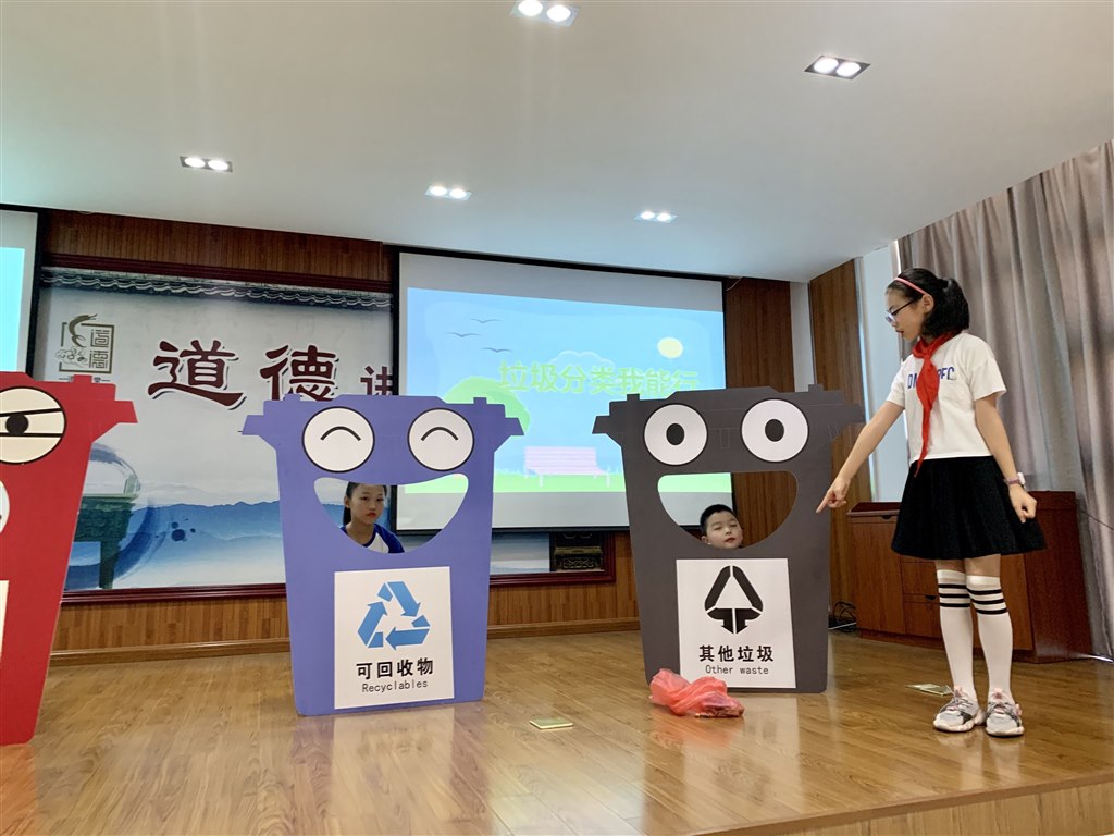 上午,东海社区道德讲堂的活动室,活动徐徐展开。其中,由我校学生带来的节目,让观众们目不暇接。非洲鼓表演《布谷鸟》作为开场节目,鼓声震震,气势磅礴,感染着在座每一个人。锡剧说唱《生态文明守则》,在动人的音乐声与亲切的方言歌中,让人切实感受生态文明的底蕴。小品《垃圾分类》幽默生趣,通过“乱扔垃圾”的路人与垃圾桶的矛盾开场,介绍了垃圾分类的重要性。此次活动还邀请了社区党总支书记授旗于志愿者队伍,负责人聂双平作《长江大保护志愿者宣言》。活动期间,举行了助学仪式、“垃圾分类项目”启动签约仪式,让教育与生活融为一体。