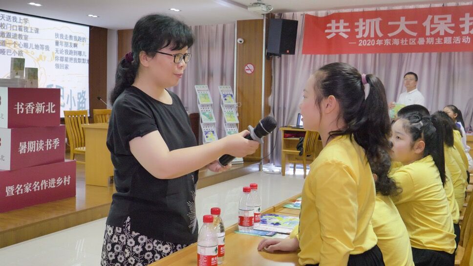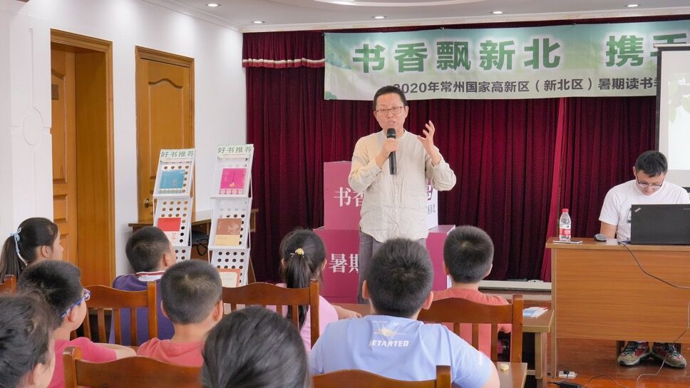 上午10点,组织开展以“书香飘新北,携手奔小康”为主题的暑期读书季暨名家名作进乡村活动。这次活动中,邀请到了常州本地的名师名家、儿童文学作家任小霞老师。任老师为孩子们带来了一堂生动有趣的创意诗课堂。介绍了自己出版的诗集,由“你走过怎样的路”款款导入,丰富了学生的想象,真正将书香诗意融进了每一位学生的心中。