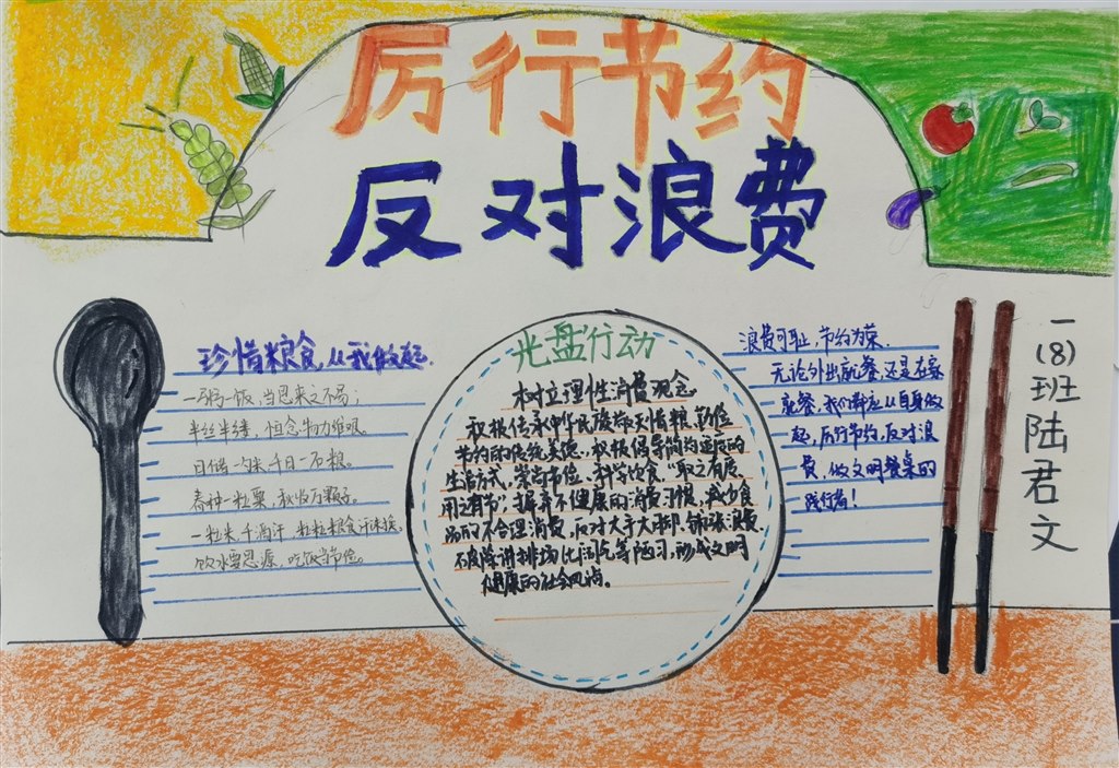为响应习近平总书记的号召,我校大队部开展了“颗粒归仓”劳动教育主题系列活动,即开展一次“厉行节约、反对浪费”主题宣讲活动、一次岗位实践活动、一次社会小调查、一次“小小丰收节”主题队会、一次“节约小达人”争章,在活动中培养队员们厉行节约、反对浪费的好习惯,养成颗粒归仓勤俭质朴的好品质。队员们积极参与,并将活动成果以手抄报的形式进行展示,涌现出一批制作精良、主题鲜明的优秀作品。