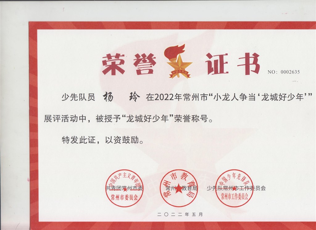 祝贺张丽瑶、蒋文欣、耿欣怡、匡梓琳、陆立云等27位同学被评为“龙城好少年”(市级)