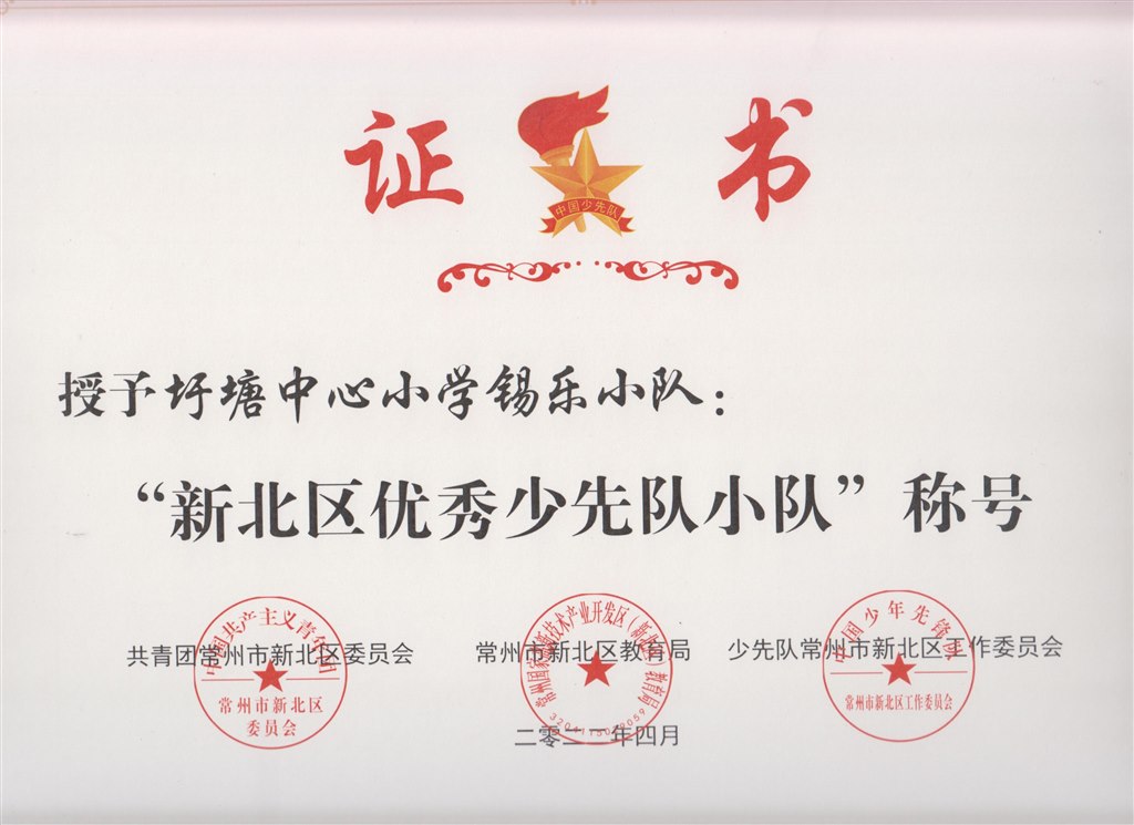 祝贺我校“锡乐小队”被评为“新北区优秀少先队小队”(辅导员:周敏)