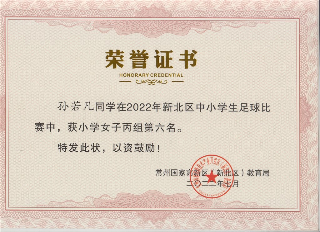 孙漪渺、巢栎涵、许晓慧、刘晨希、周雨昕等同学在2022年新北区中小学生足球比赛中,荣获小学女子甲、乙、丙组第一、二、六名