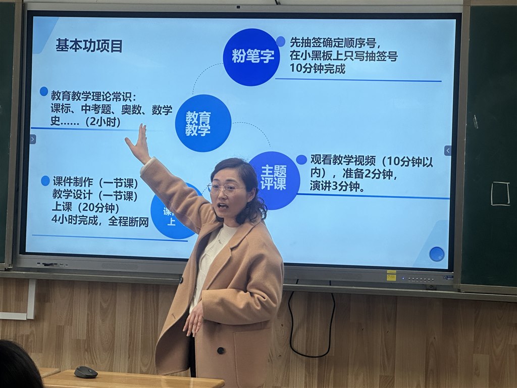 最后朱丽萍老师就新北区小学数学教师基本功比赛的内容环节对数学组全体教师进行了培训。(插入图片14、15)