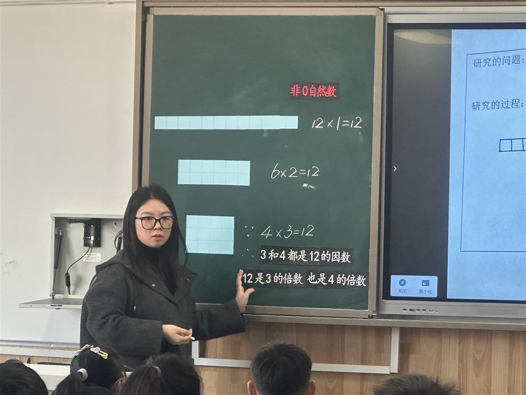 戴莉老师执教五下《因数和倍数》。戴老师巧妙地设计多个教学环节,如“研究因数”“研究倍数”“因数和倍数的联系”等,既激发了学生的学习兴趣,又培养了学生的思维能力和合作意识。整节课的教学环节设计环环相扣,层层递进,让学生在探究中学会了知识,在合作中收获了成长。(插入图片5、6)